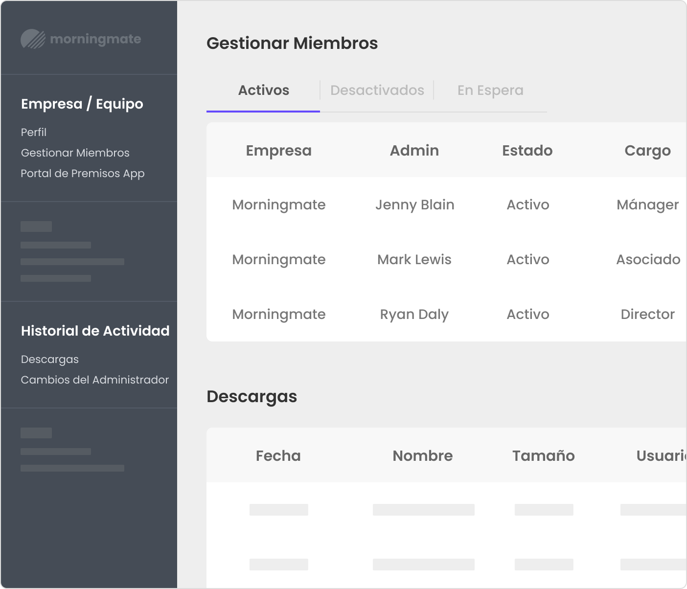 Gestión de descargas: Ajusta los privilegios de descarga y mira el historial de descargas