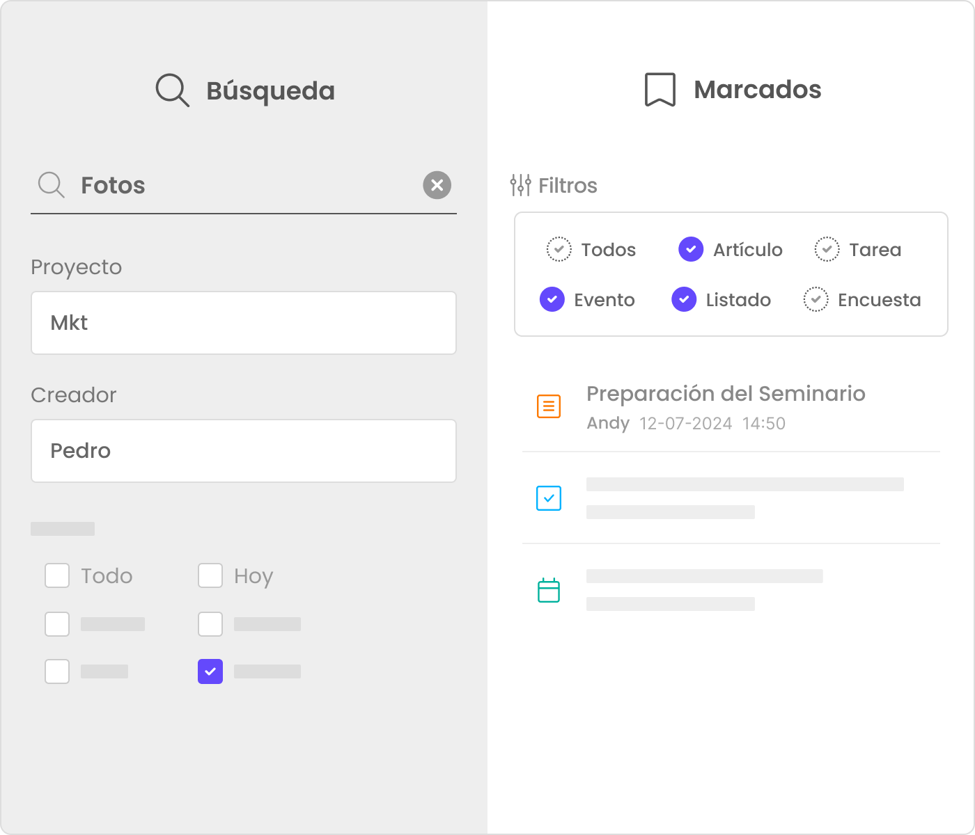 Búsqueda universal o específica del espacio de trabajo
