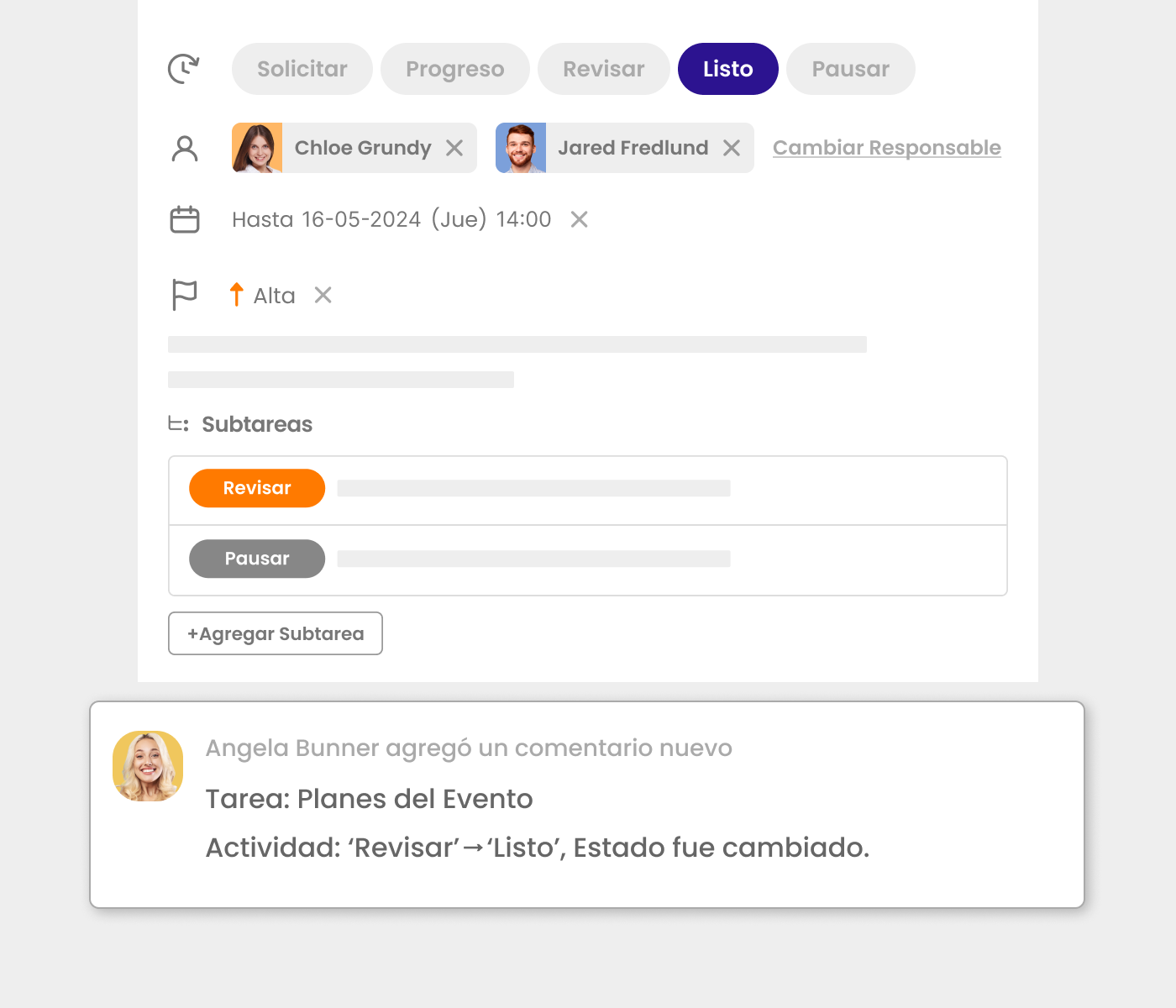 Recibe notificaciones directas cuando el estado de tarea cambie