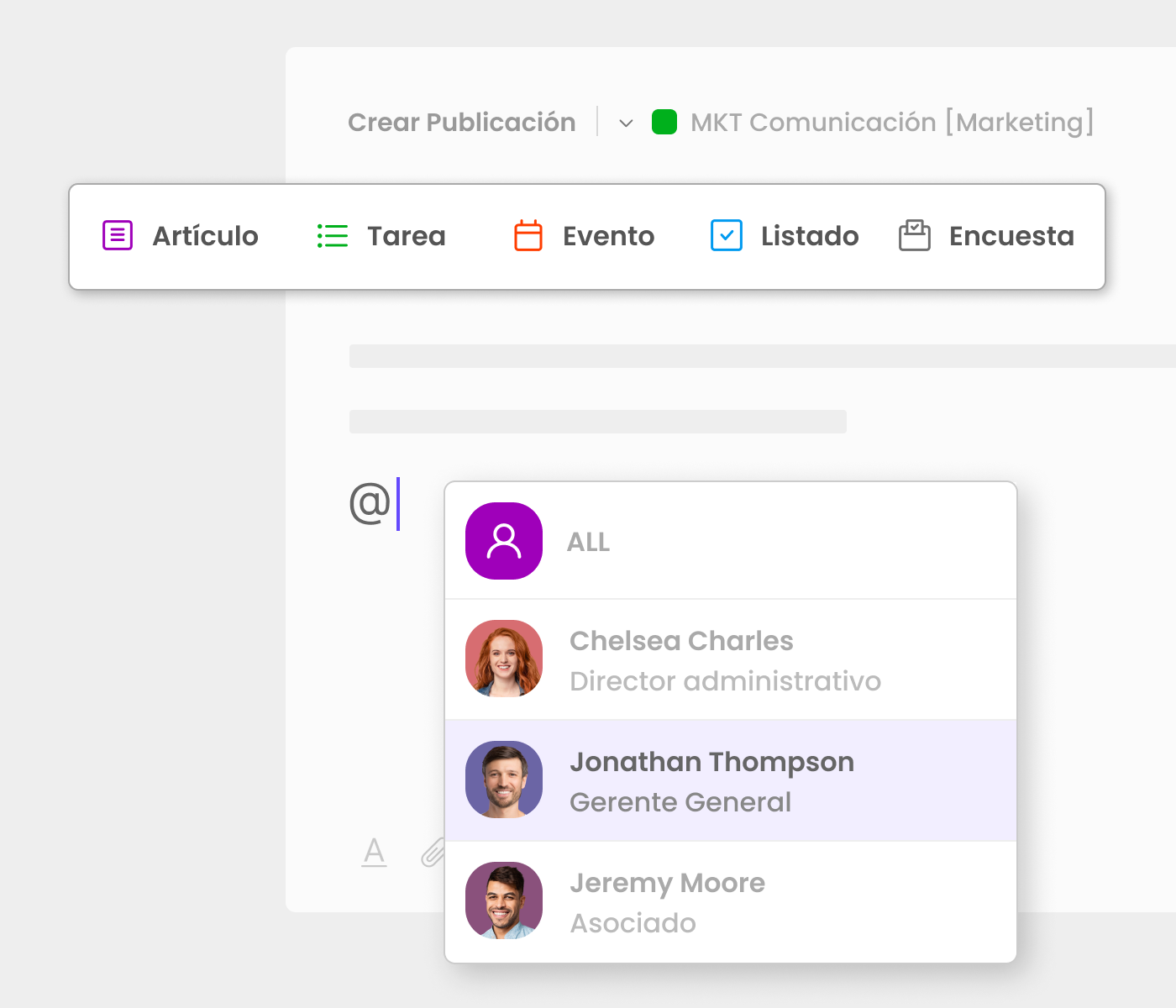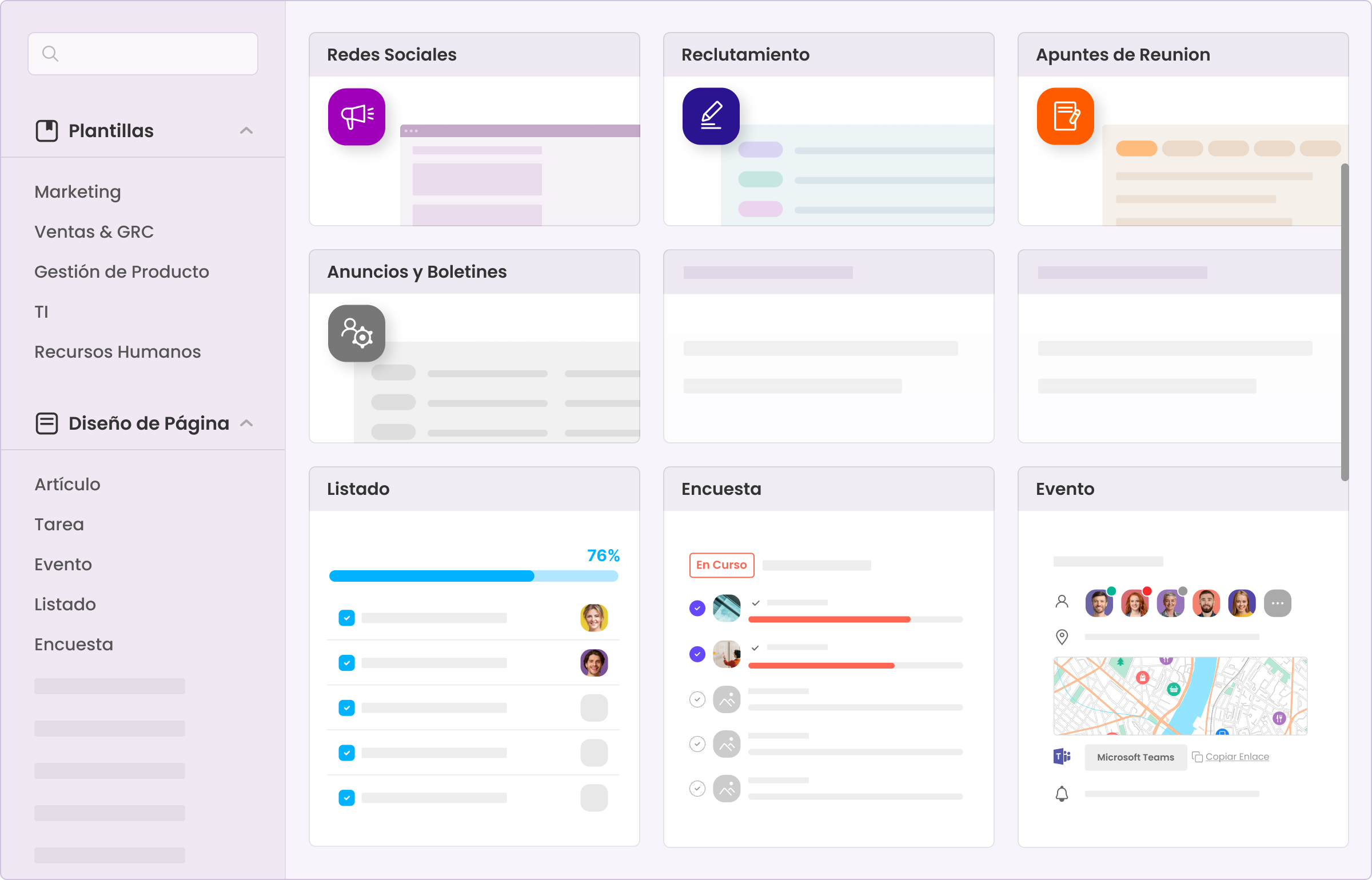 Optimiza la comunicación organizando los espacios de trabajo por ''Ubicación'' y ''Departamento''