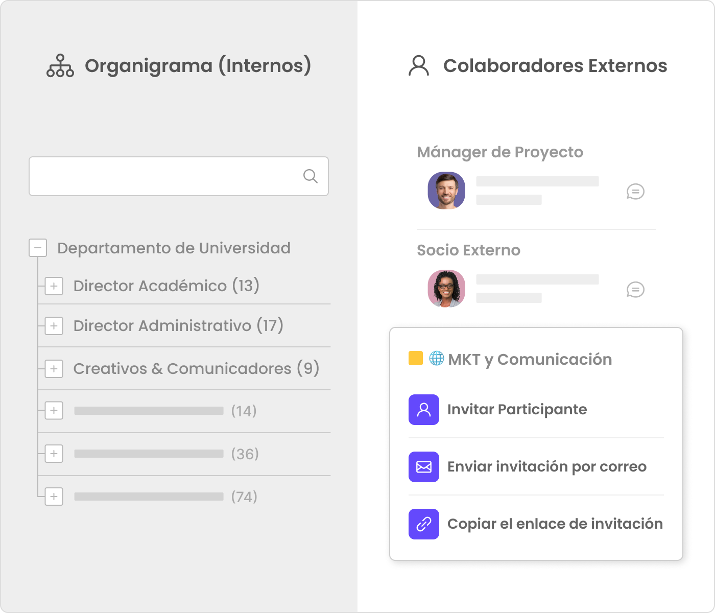 Invita nuevos usuarios con un simple link, luego actualiza tu organigrama y los permisos de acceso