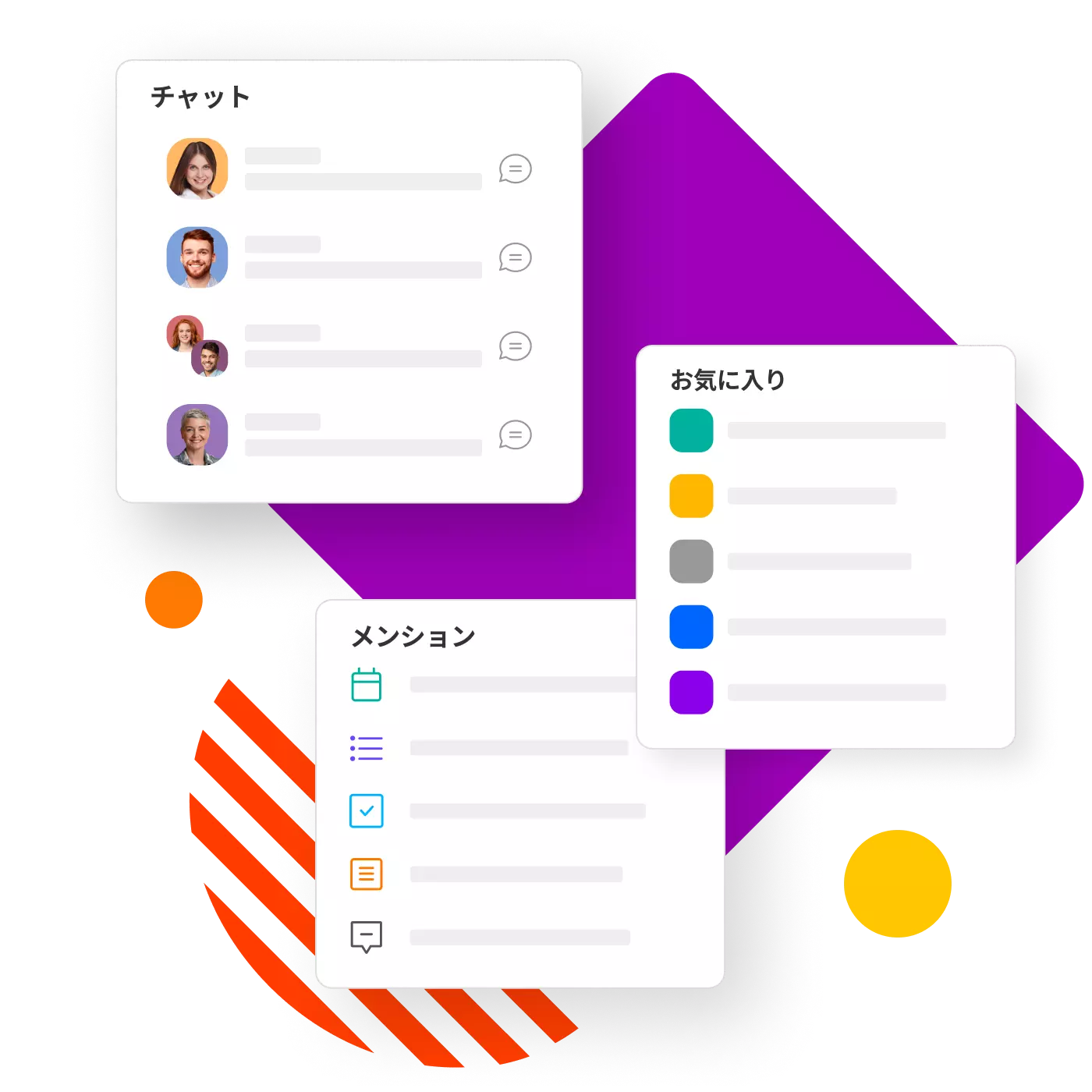 プロジェクトとタスクファイル、メンションと投稿をフィルタリングして素早く簡単に確認