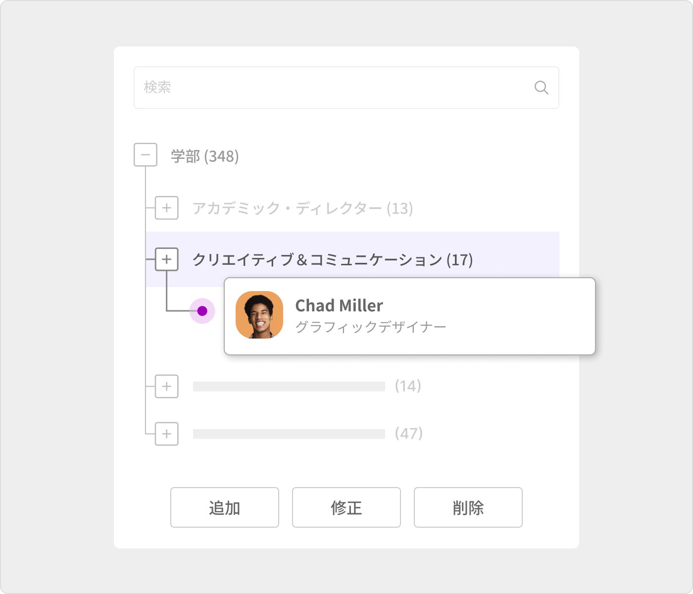 チームを管理する 組織図を作成して、役割や情報の流れをすぐに把握できるようにしましょう。