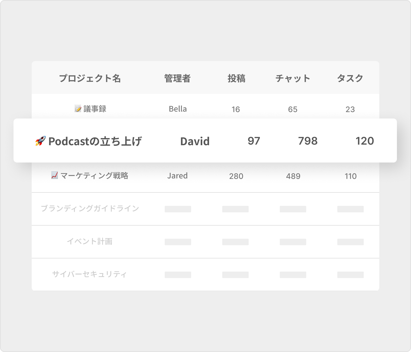 インサイトを取得する ユーザーアクセスや投稿活動の統計が、組織の戦略に役立ちます。