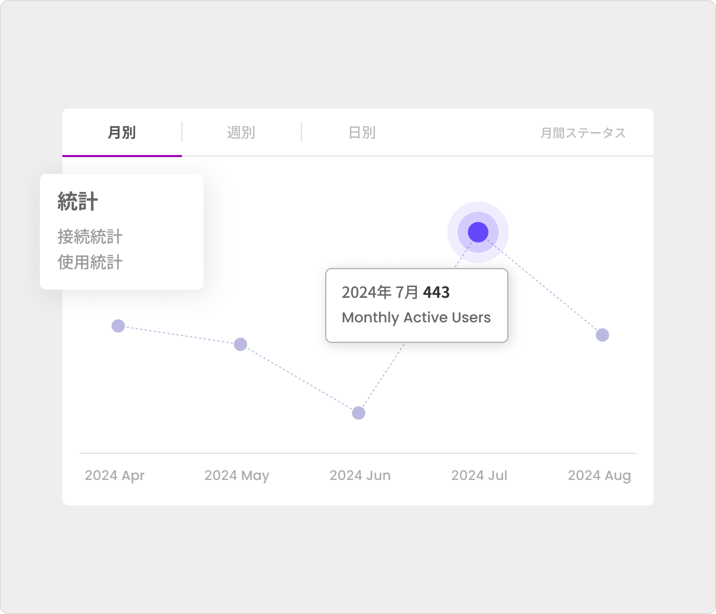 デバイスタイプごとの、日別、週別、月別のログイン状況を確認します。