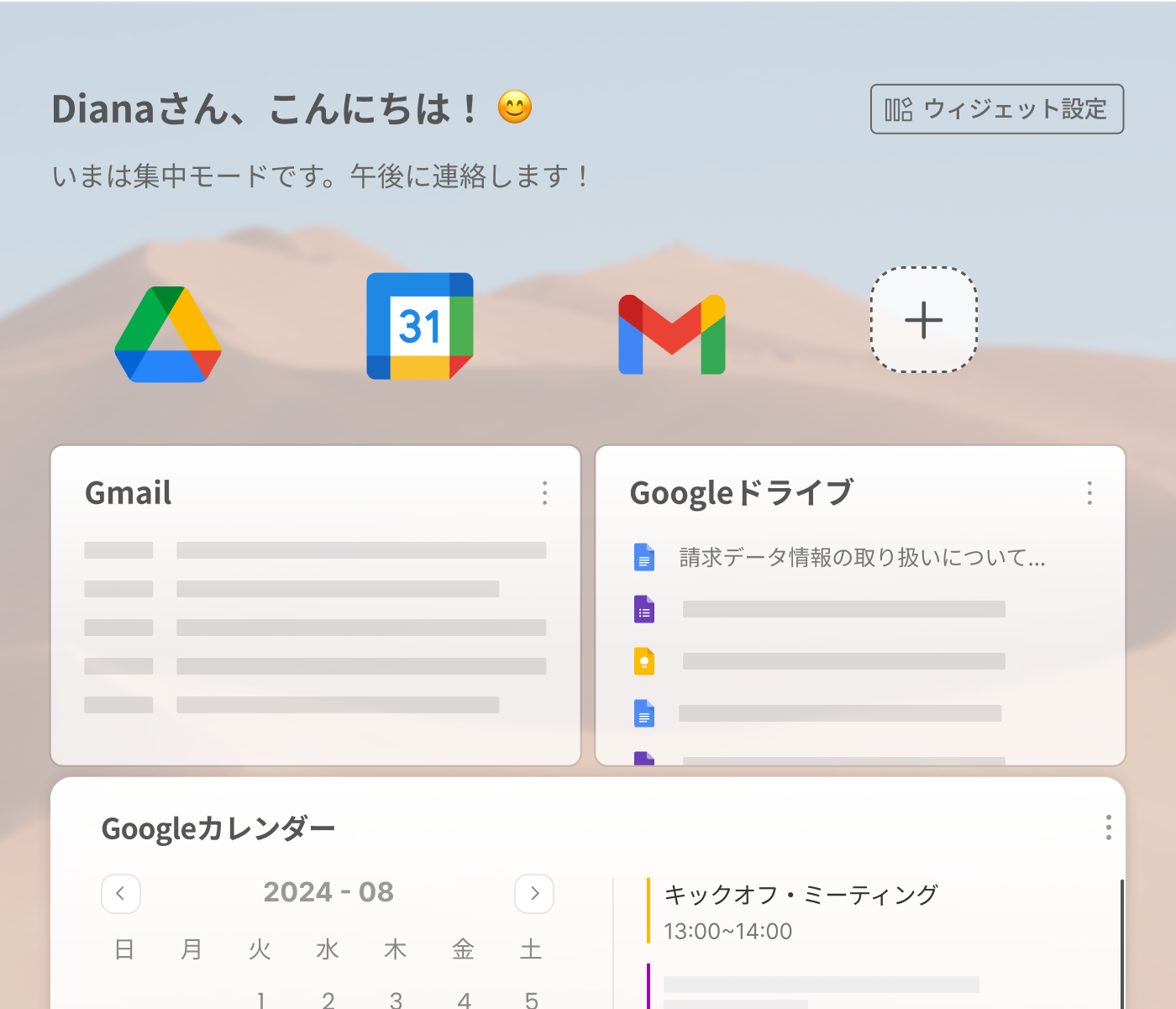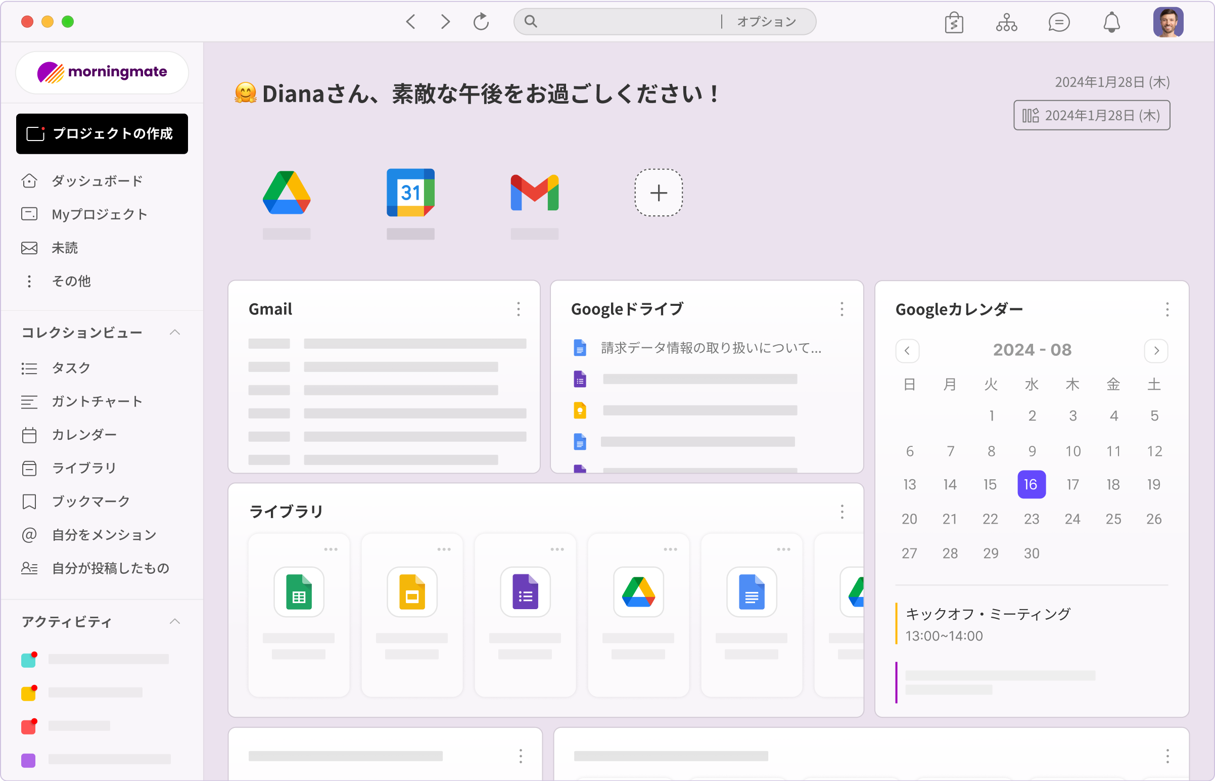 Gmailの受信トレイ、Googleドライブ、GoogleカレンダーをMorningmateのダッシュボードのウィジェットとして統合します。