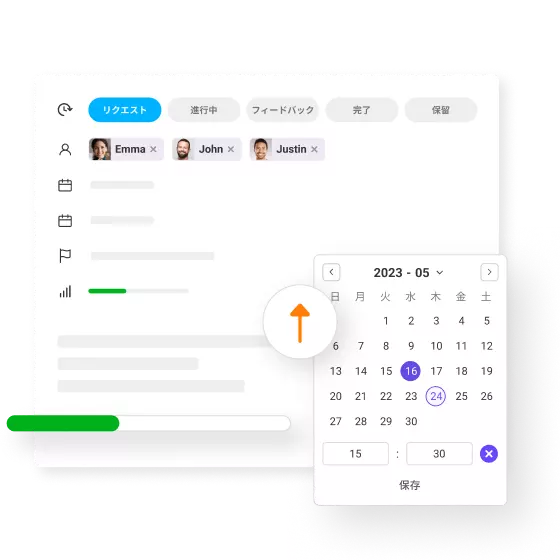 担当者を指定し、タスクをすぐに作成できます。期日、優先順位、進捗度、サブタスクも設定が可能です。