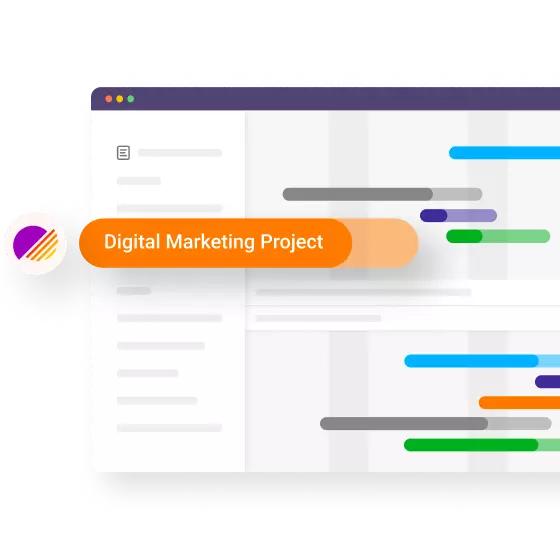 プロジェクト全体の予定、各タスクの進捗状況、メンバーの活動記録がガントチャート形式で表示されます。