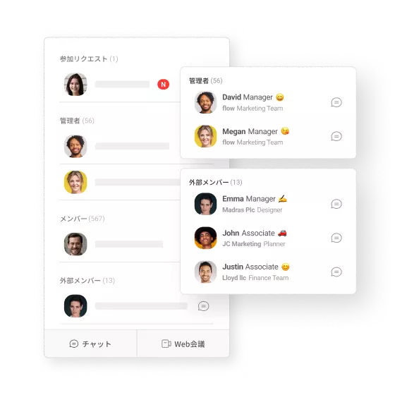 一緒にタスクに取り組むプロジェクトにアクセスを許可したり、プロジェクト参加者に管理者権限を付与できます。