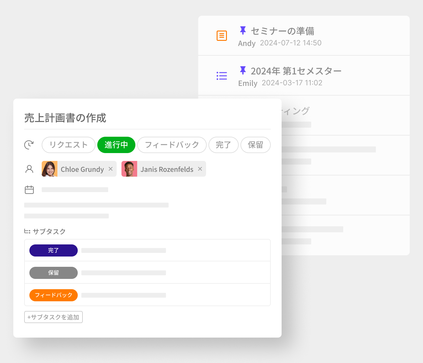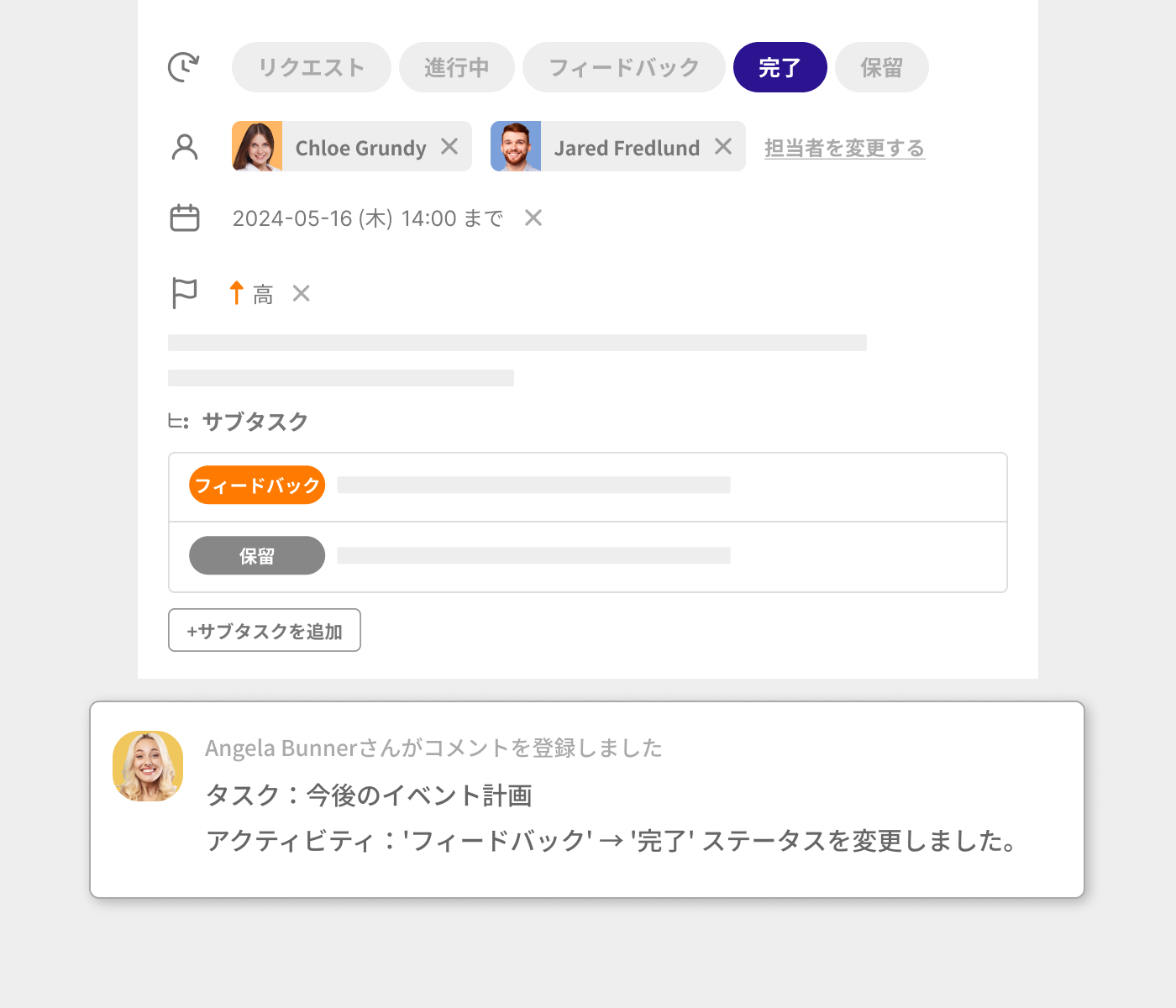 タスクの進捗の更新や完了時に通知を受ける