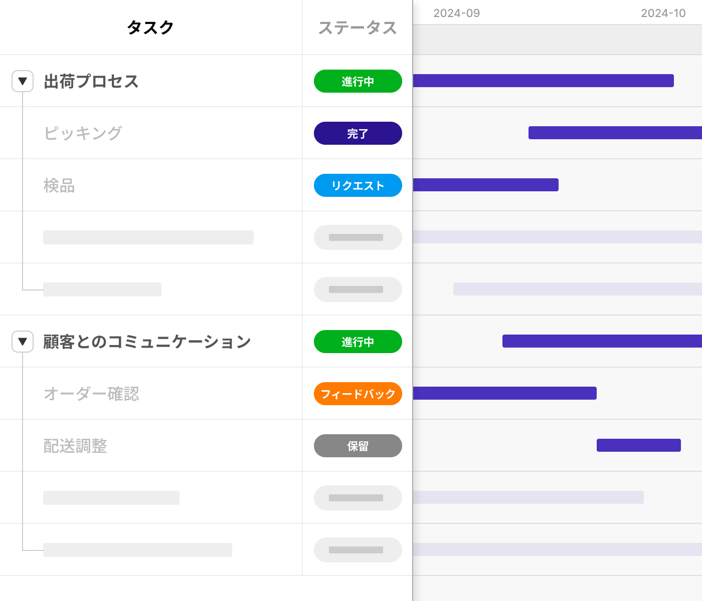 視覚的なガントチャートを活用して、業務の相互関係を一目で把握する