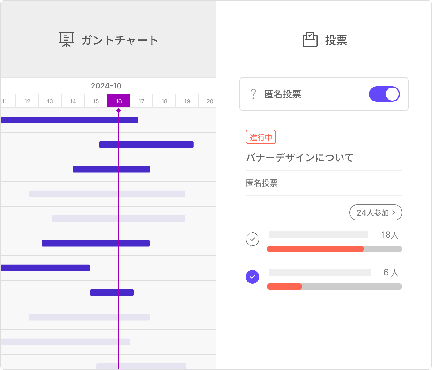 カスタマイズ可能な投票を作成し、公開または匿名でメンバーの意見を集める