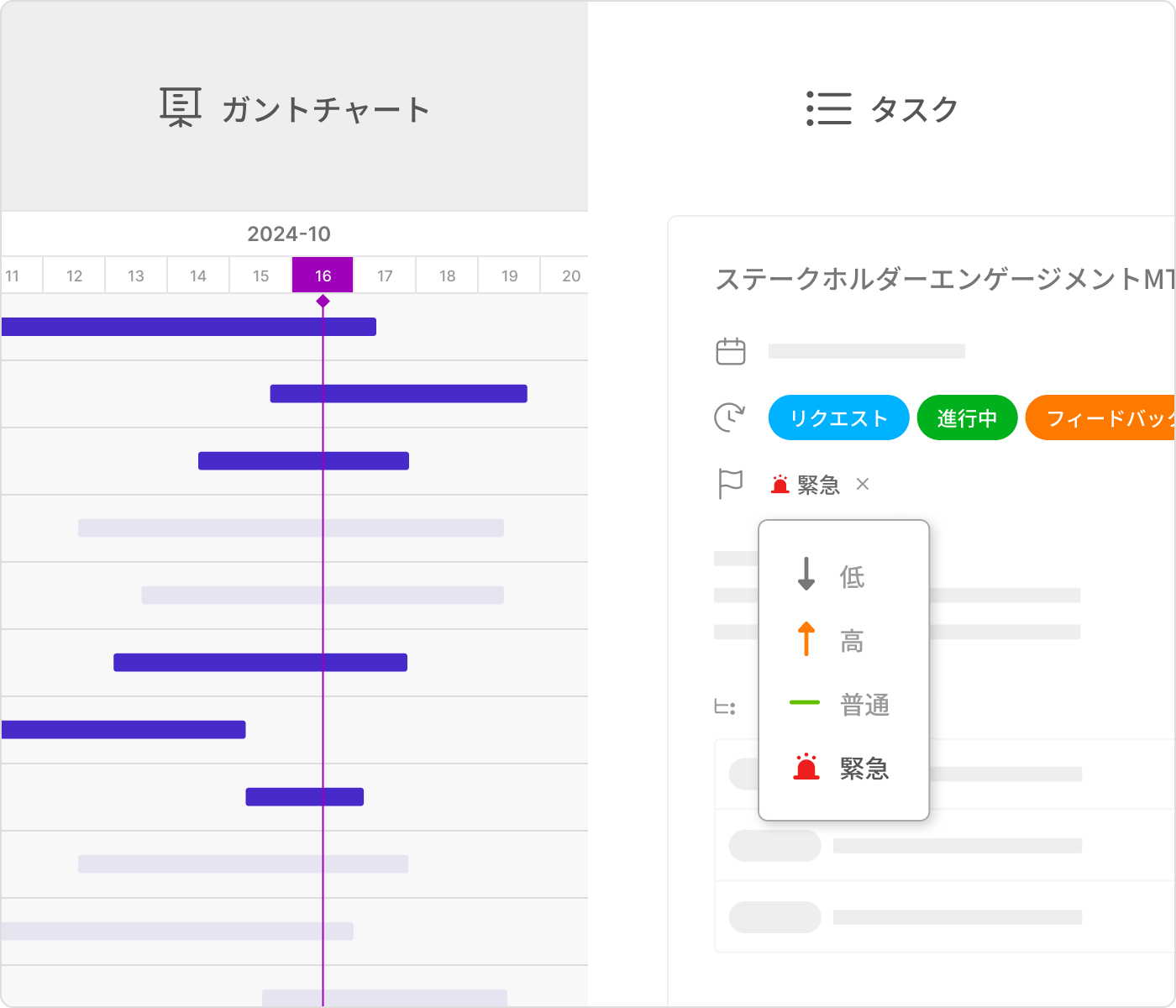 - タスクリストとガントチャート