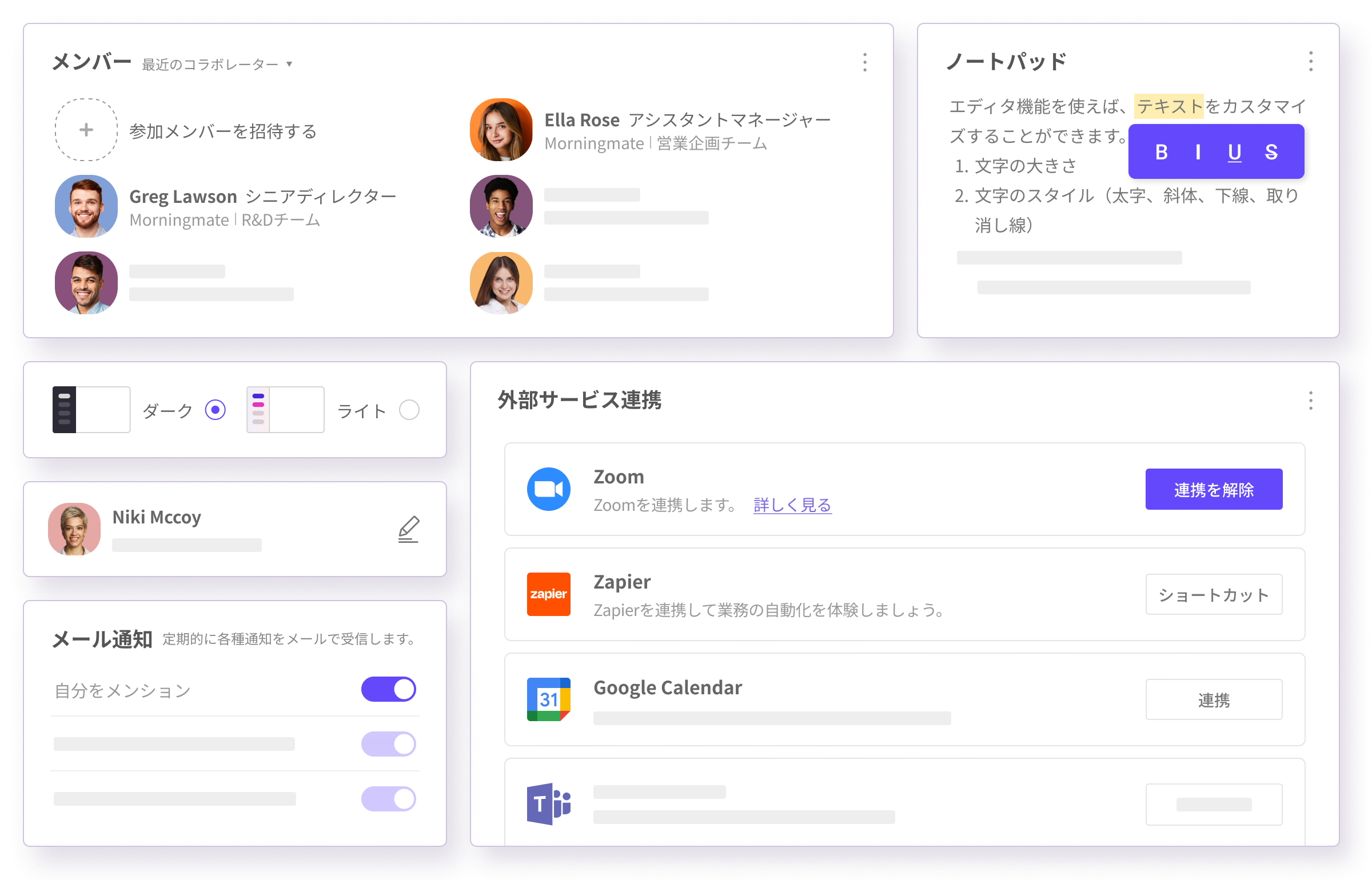 カレンダー: タスクやイベントをカレンダーで確認でき、Googleカレンダーとの連携も可能です