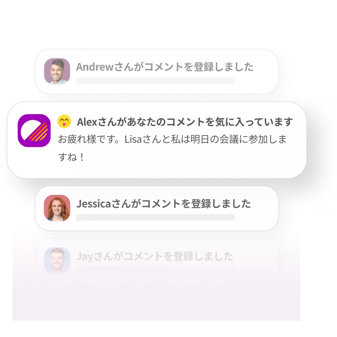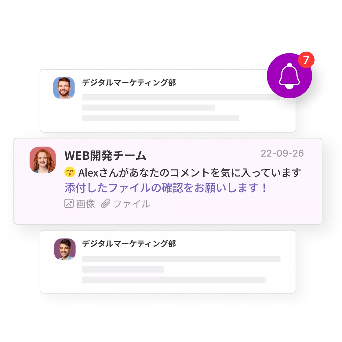 通知が多すぎて仕事に集中できませんか?プロジェクトごとに設定可能な通知は、重要な業務だけピンポイントでお知らせします